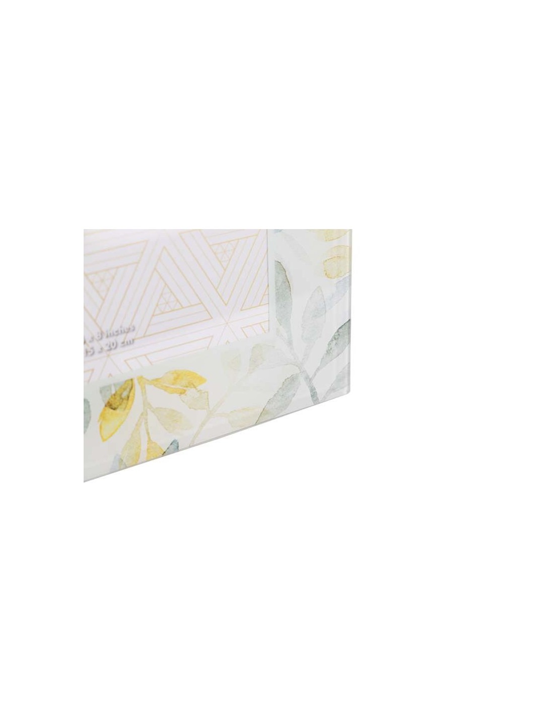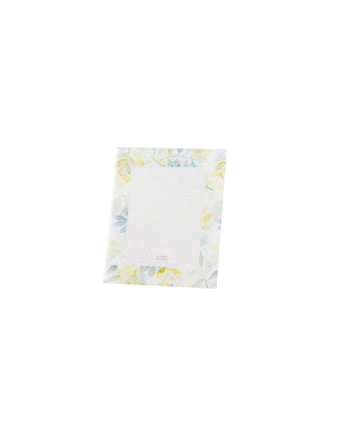 Portafoto fabricado en cristal con impresiones florales para fotografías de 15 x 20 cm, una medida perfecta para destacar imágenes especiales, retratos familiares o recuerdos importantes de viajes y celebraciones. Su diseño elegante y delicado combina la transparencia del cristal con bonitas decoraciones florales impresas sobre la superficie, aportando un toque romántico y actual a cualquier ambiente de tu hogar. Las flores en tonos suaves y armoniosos transmiten serenidad y frescura, convirtiendo este portafoto en una pieza decorativa única que luce tanto con fotografías en blanco y negro como en color.