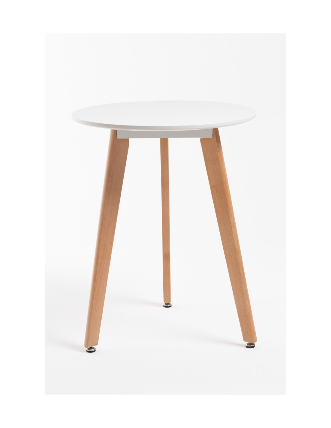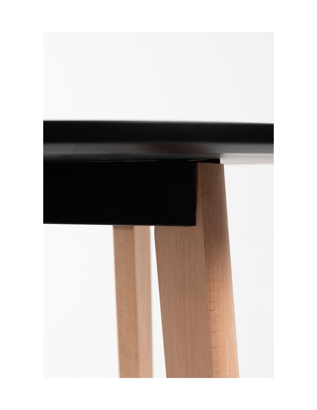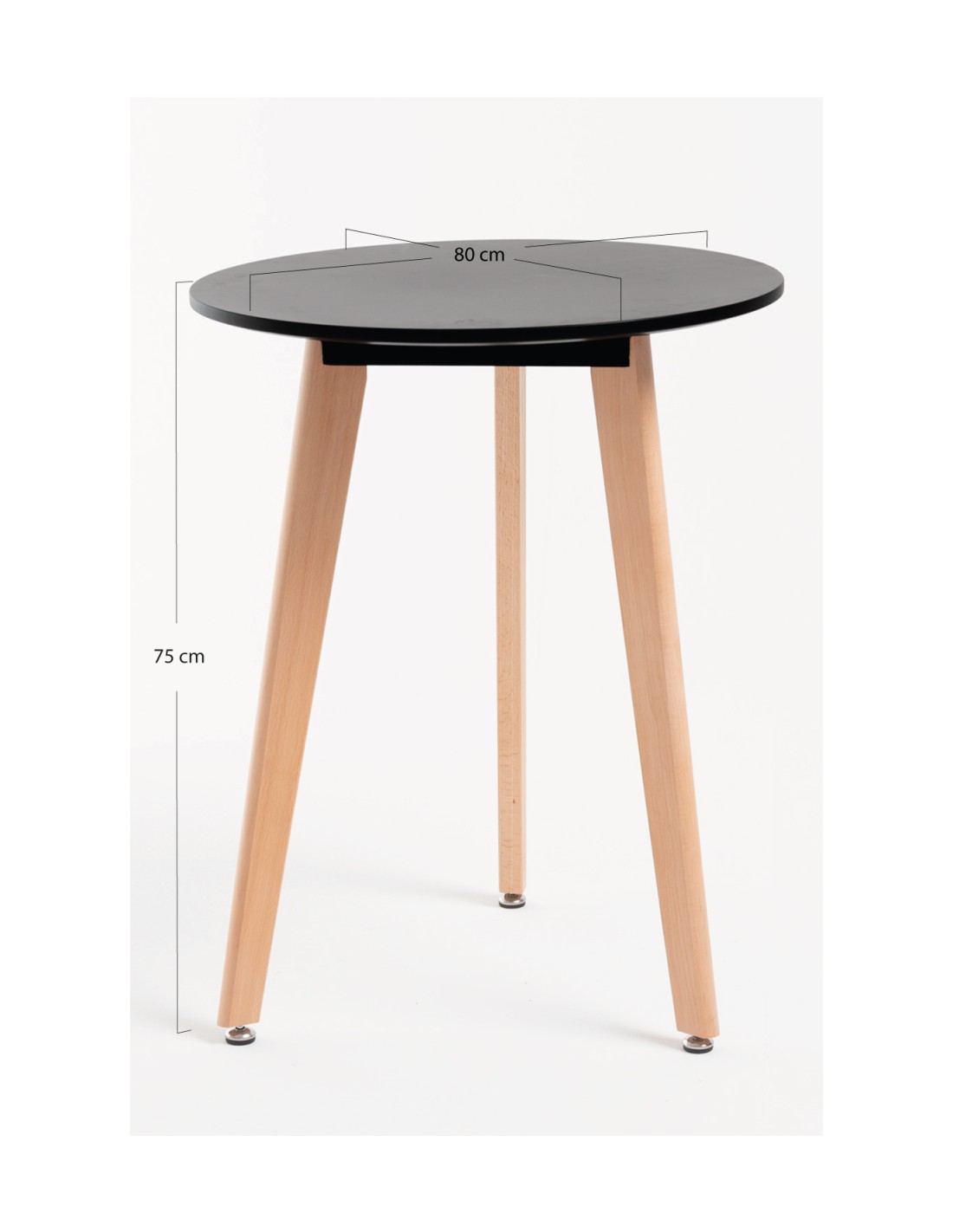 Mesa de madera lacada y patas de madera de haya en color natural con un diámetro de 80cm y una altura de 75cm disponible en 2 colores blanca y negra ideal tanto para cocinas o salones.