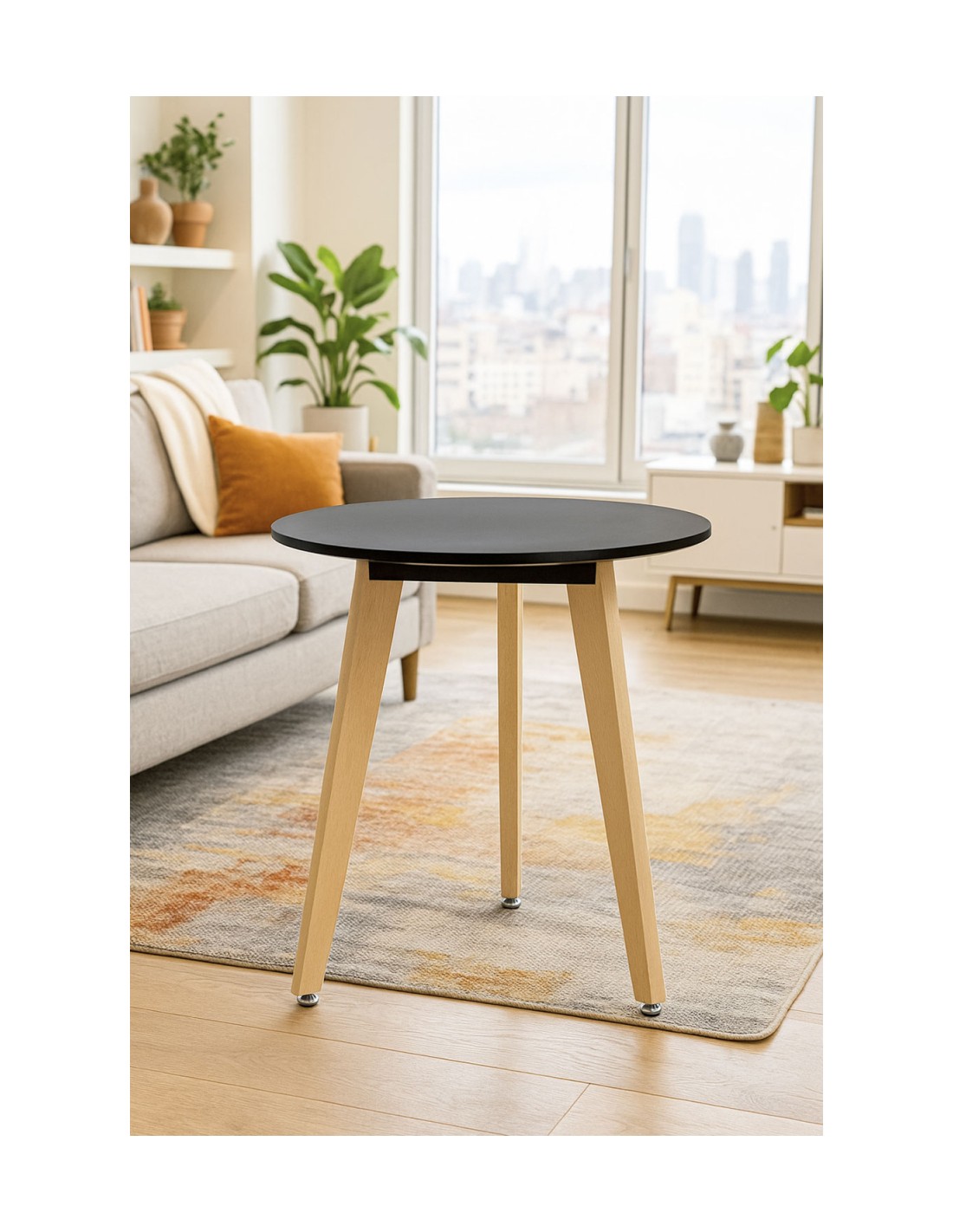 Mesa redonda mona 80cm de madera lacada con patas de haya natural