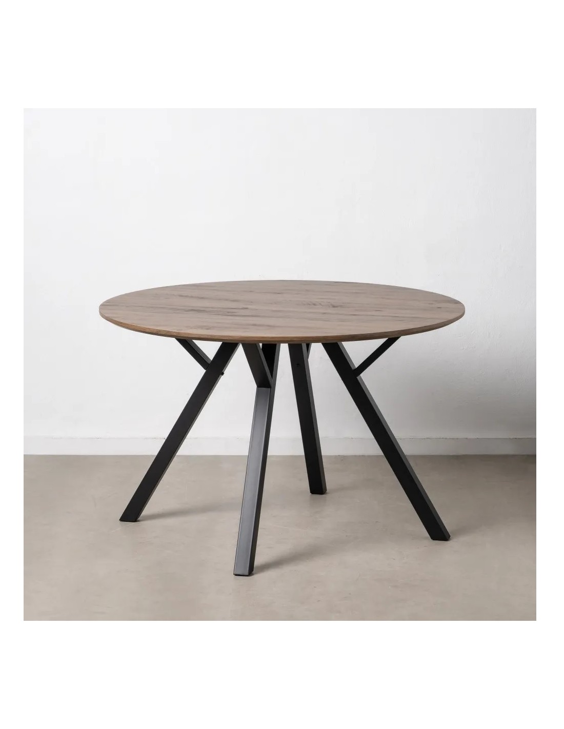En definitiva, esta mesa redonda de madera DM en color marrón con patas de hierro negro es la elección perfecta si buscas una pieza elegante, resistente y funcional para tu hogar o negocio. Su diseño moderno y su amplia superficie la convierten en un elemento imprescindible en cualquier espacio bien decorado.