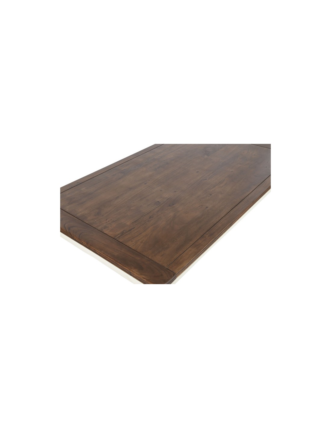 Las patas y el cajillo inferior en color beige aportan un contraste suave y elegante que realza el tablero y mantiene una estética armónica. Colocar la mesa en una zona luminosa permite resaltar los matices de la madera y crear un comedor acogedor.