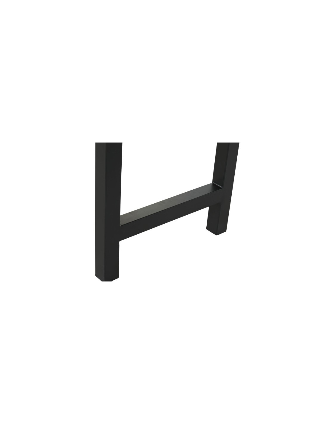 Las patas dobles en metal negro aportan una gran resistencia estructural y un estilo industrial muy actual. Su diseño lateral libera espacio central, facilitando la colocación de sillas y permitiendo una mayor comodidad para los comensales.