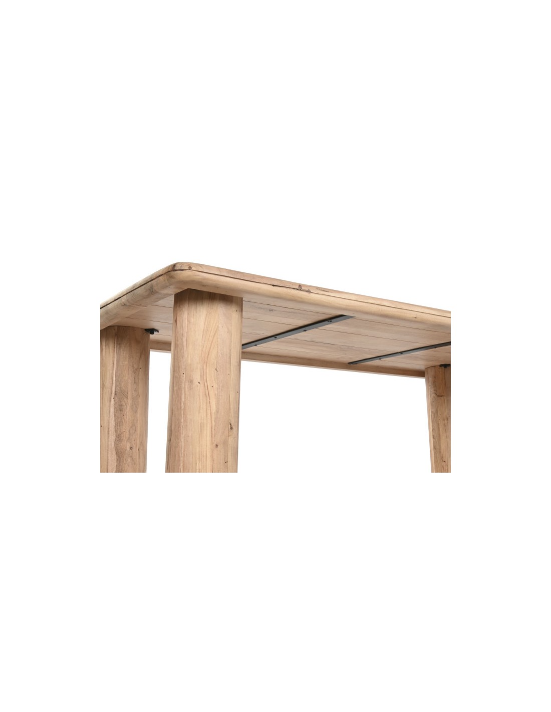 Los refuerzos metálicos situados en la parte inferior del tablero aportan una mayor solidez estructural, evitando deformaciones y garantizando una superficie firme incluso con uso intensivo. Este detalle técnico asegura que la mesa mantenga su forma y estabilidad durante muchos años.