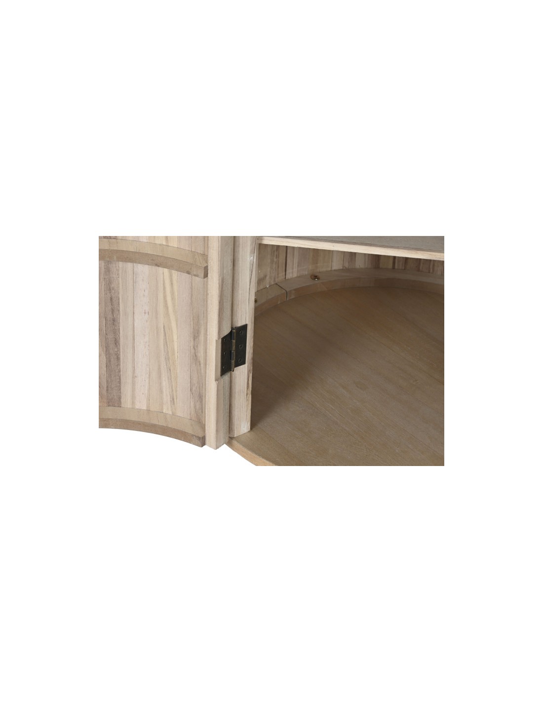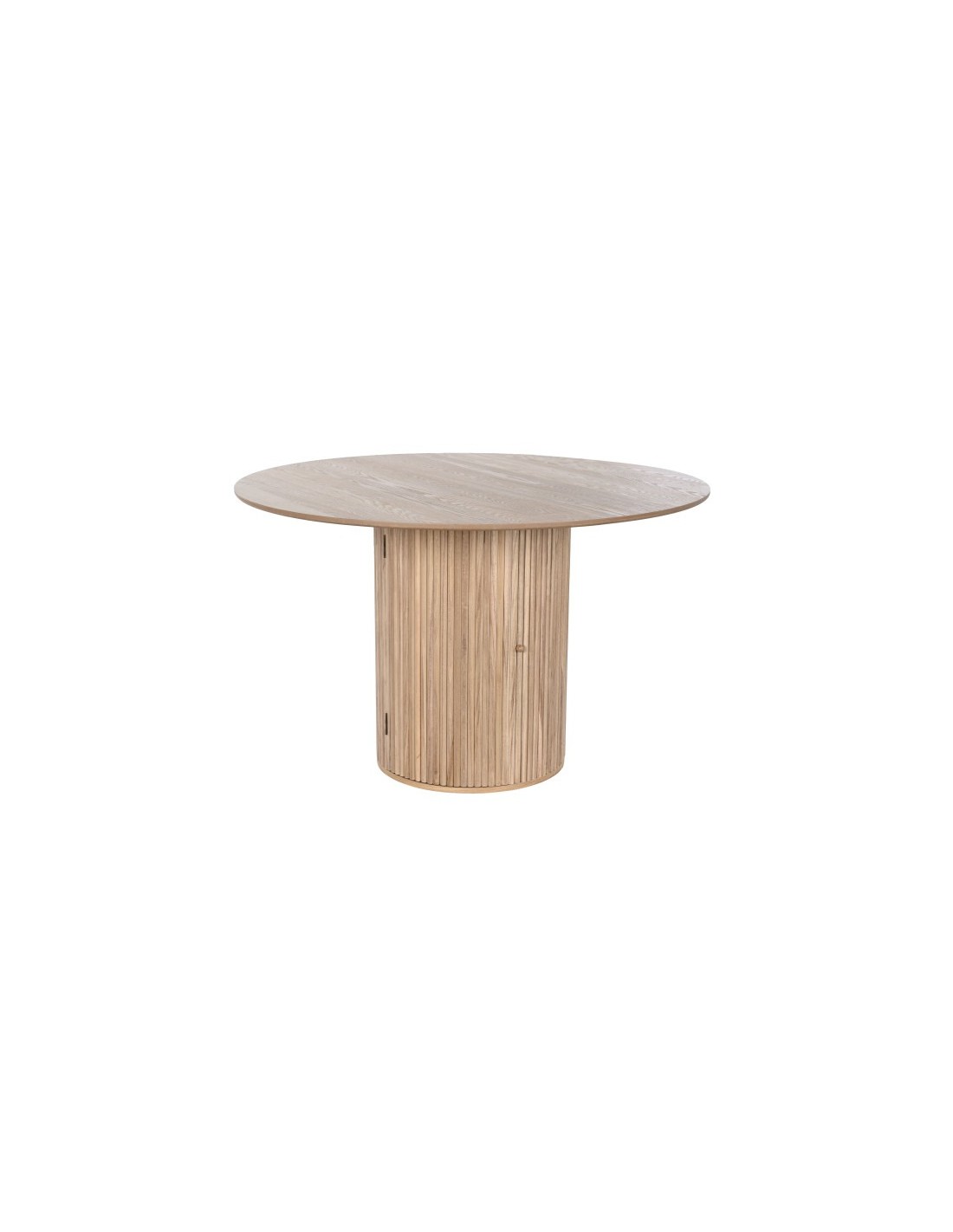 La Mesa Redonda en Paulownia con Puerta 120cm destaca también por su versatilidad, ya que combina una estética atemporal con una solución de almacenaje muy práctica, convirtiéndose en una pieza funcional y decorativa a partes iguales.
