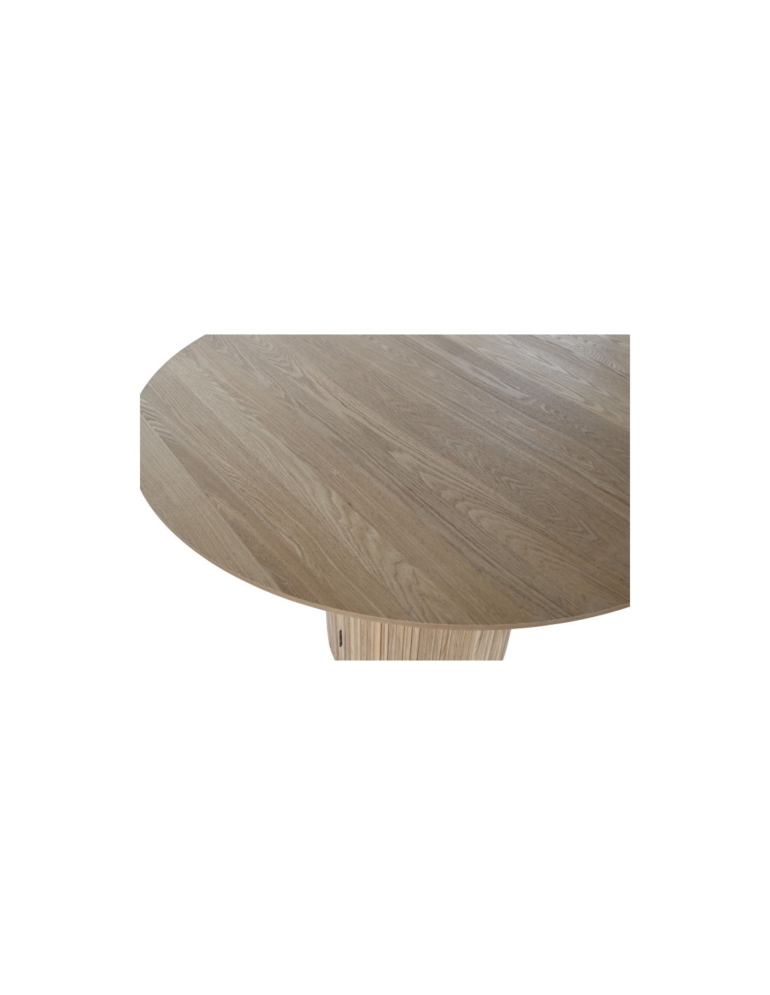 La Mesa Redonda en Paulownia con Puerta 120cm es perfecta para comedores donde se busca aprovechar cada centímetro sin renunciar al diseño. Su formato redondo favorece la circulación del espacio y crea un ambiente más cercano y fluido, ideal tanto para el día a día como para reuniones familiares o con amigos.