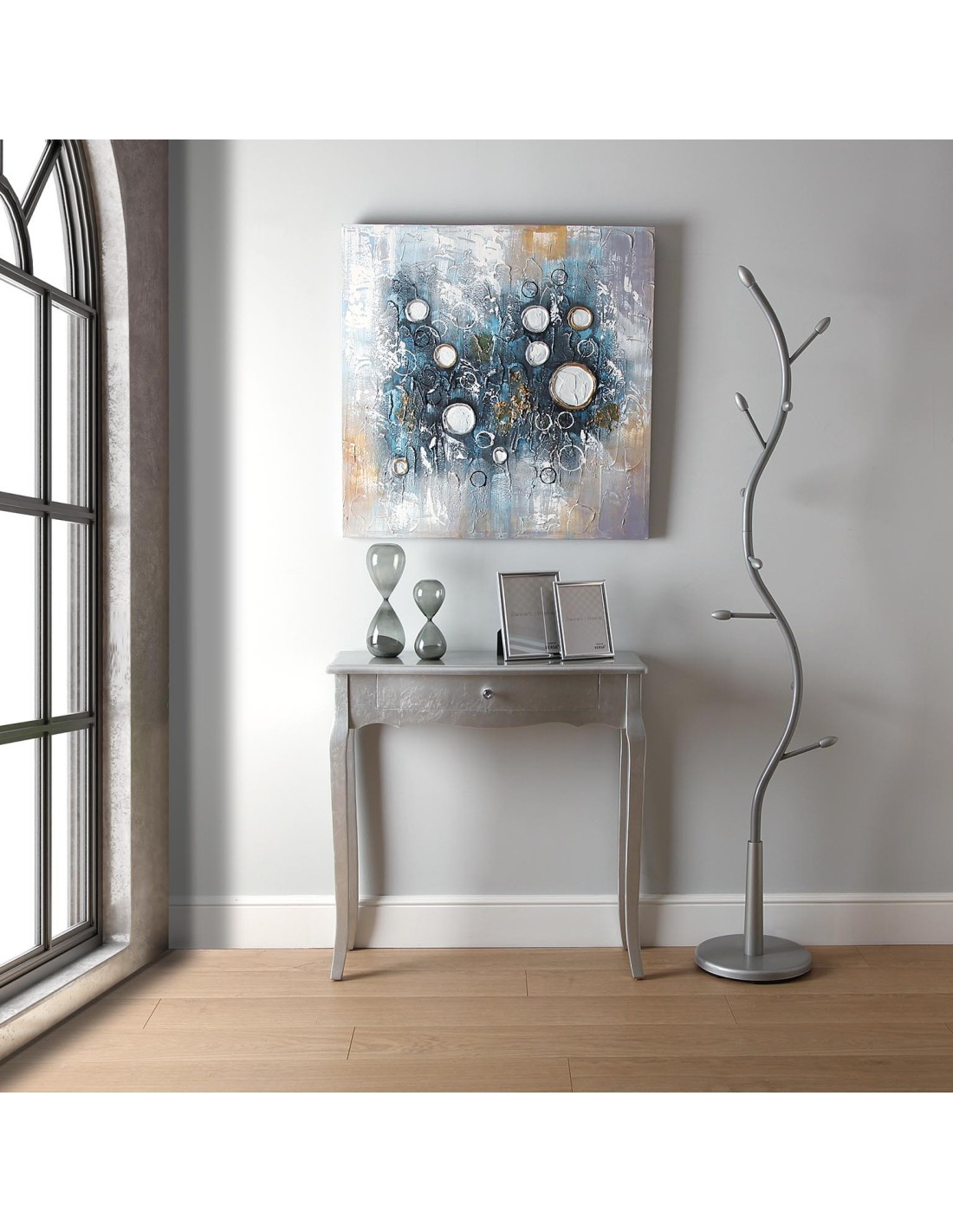 Su acabado en plata le otorga un aire moderno y luminoso, fácil de combinar con distintos estilos decorativos como minimalista, contemporáneo o clásico. Es ideal tanto para entradas pequeñas, como para rincones del hogar donde se busca un toque práctico y decorativo.