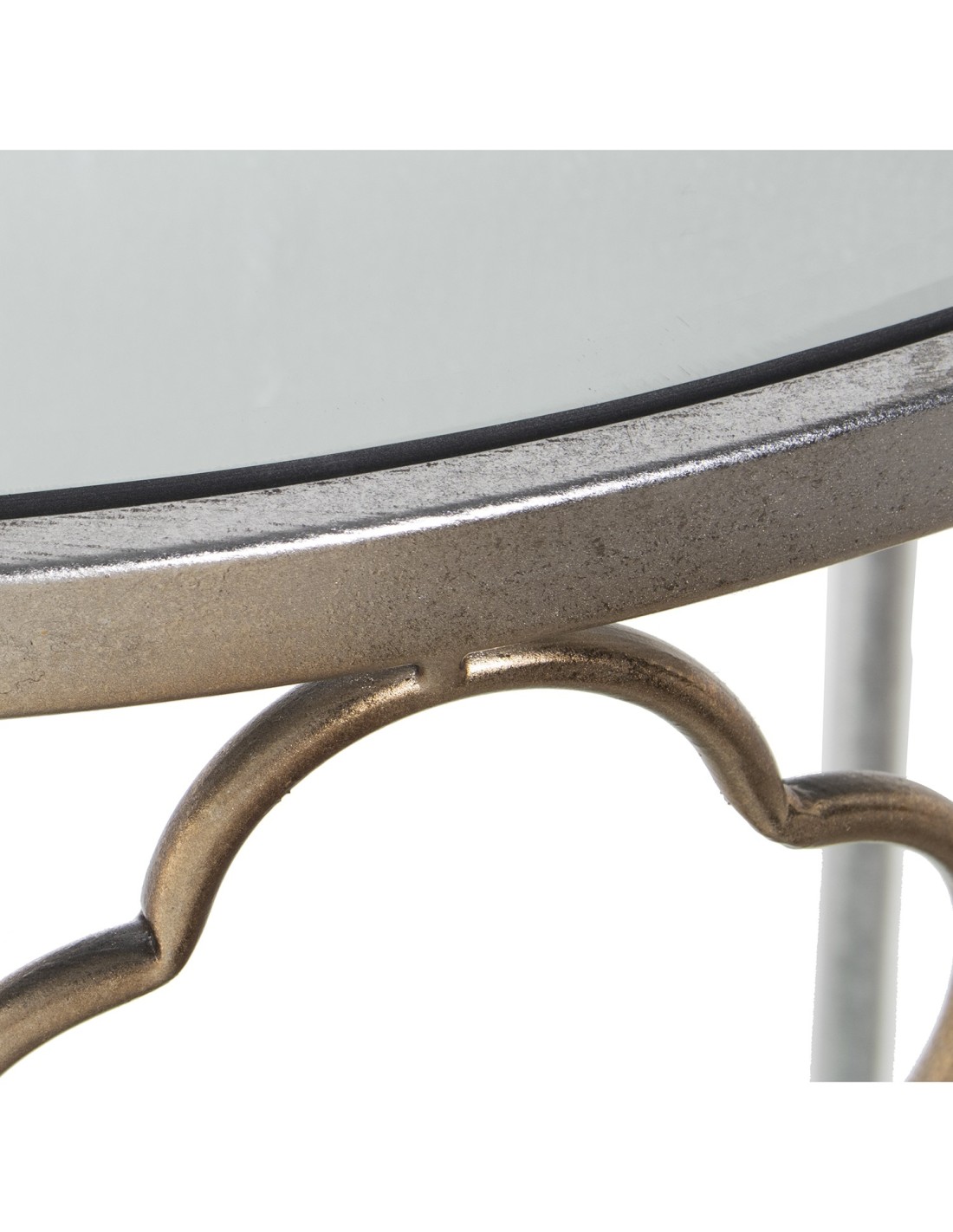 El acabado en color plata aporta luminosidad y un aire sofisticado, mientras que la base de espejo refleja la luz y ayuda a crear una mayor sensación de amplitud en el espacio. Es perfecto para colocar objetos decorativos como jarrones, bandejas, figuras, marcos de fotos o pequeños elementos organizativos.