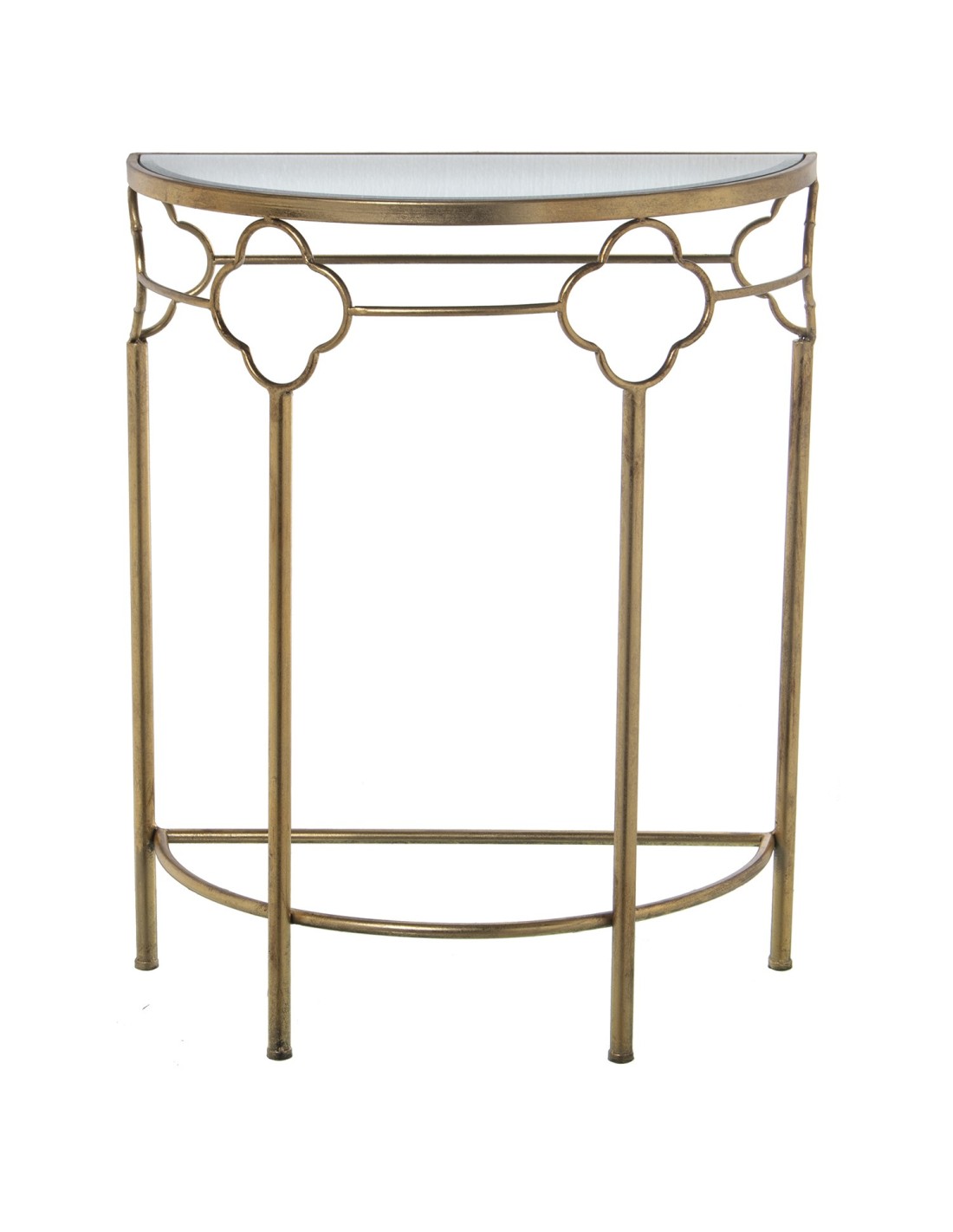 Consola de entrada de metal dorada con espejo para una decoración elegante y sofisticada