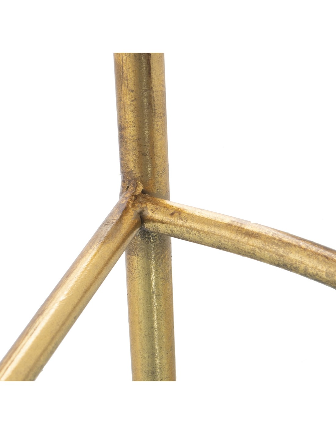 Este mueble para entrada fabricado en hierro y pintado en color dorado con base de espejo es una pieza decorativa diseñada para aportar elegancia y luminosidad a entradas pequeñas. Sus medidas de 60 cm de ancho, 30 cm de fondo y 75 cm de altura lo convierten en una solución perfecta para recibidores estrechos, pasillos o zonas donde se necesita un mueble funcional sin ocupar demasiado espacio.