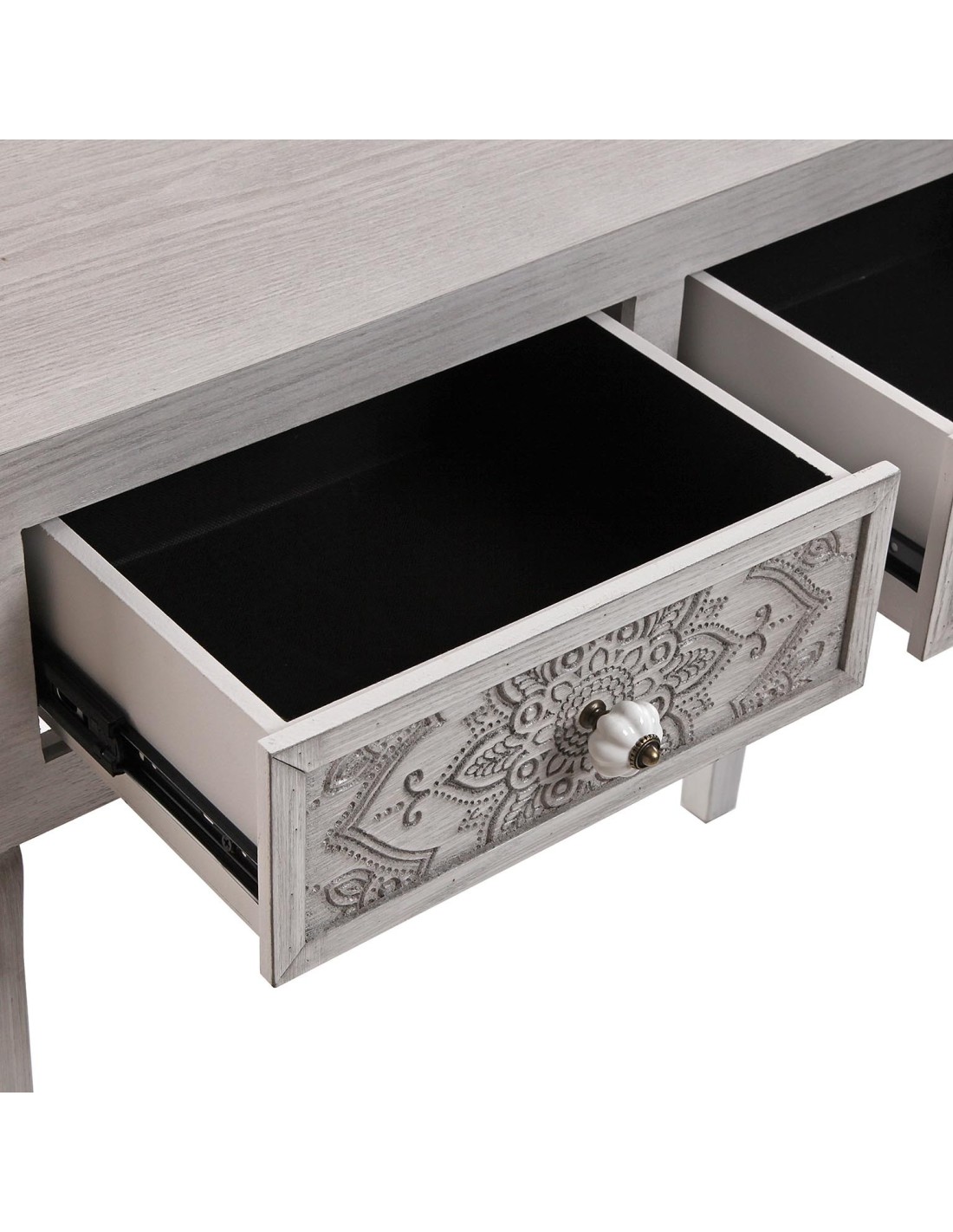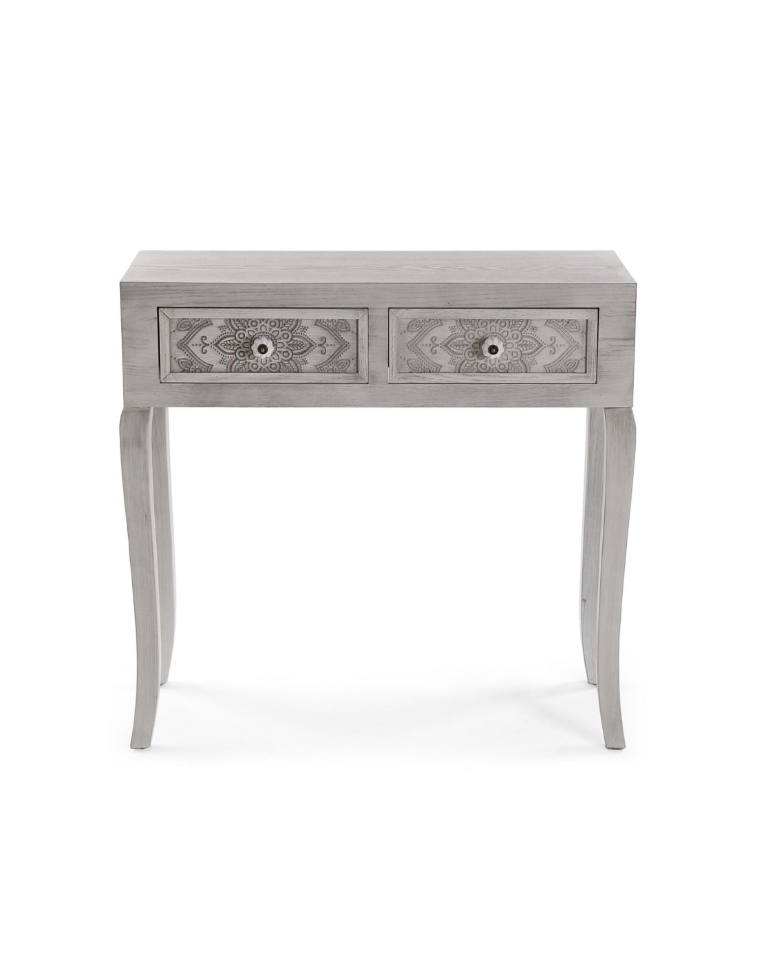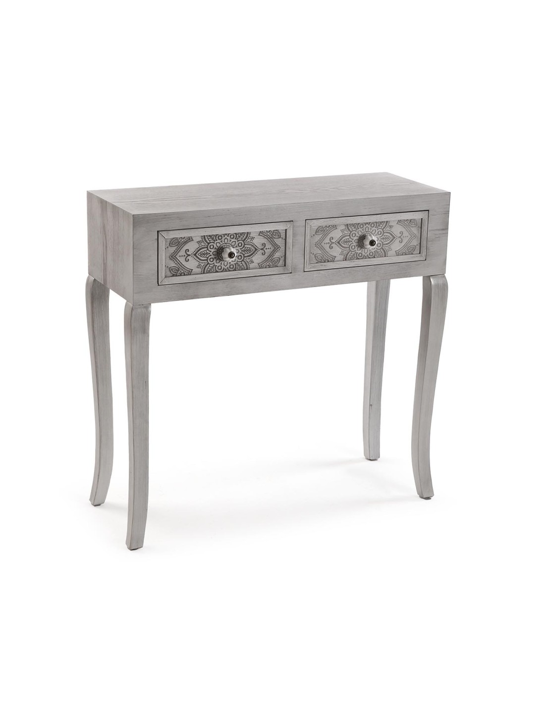 Consola de entrada gris con 2 cajones de mándala para una decoración elegante y con personalidad