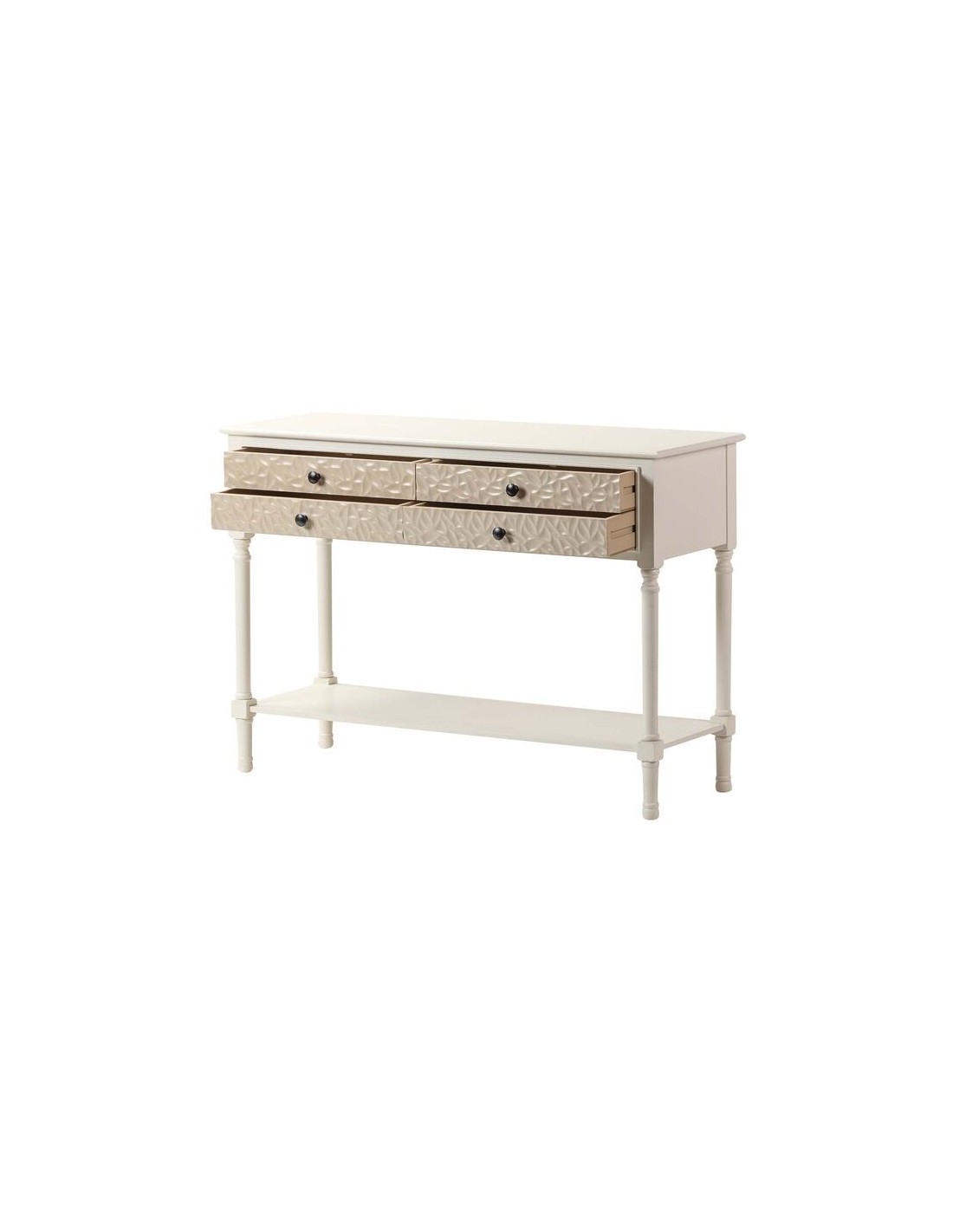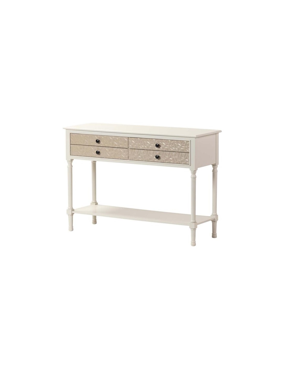 Una de sus principales ventajas es su gran capacidad de almacenaje gracias a sus cuatro cajones, que permiten mantener el recibidor despejado y organizado.