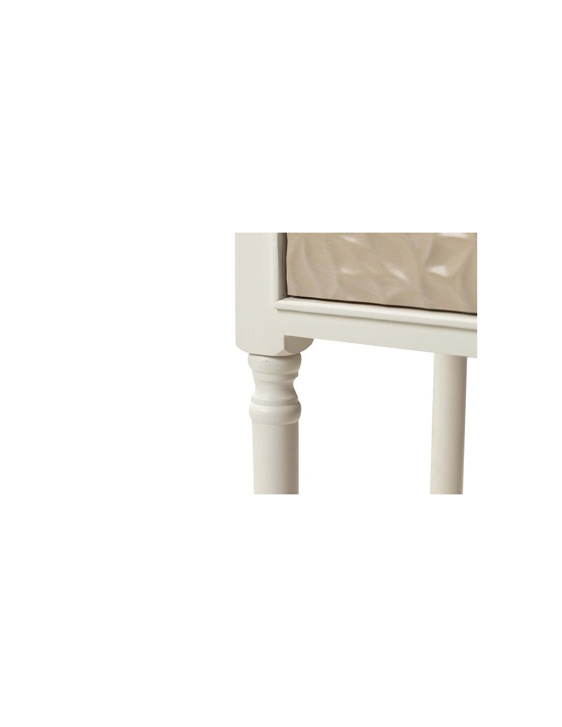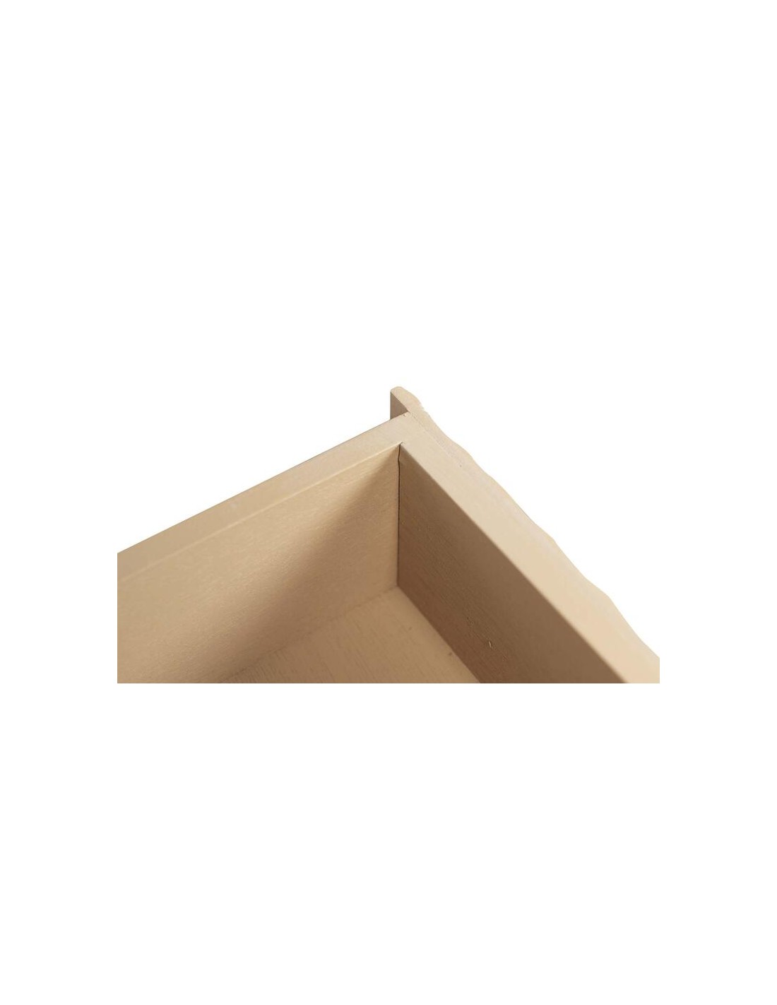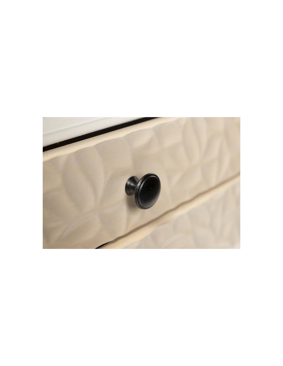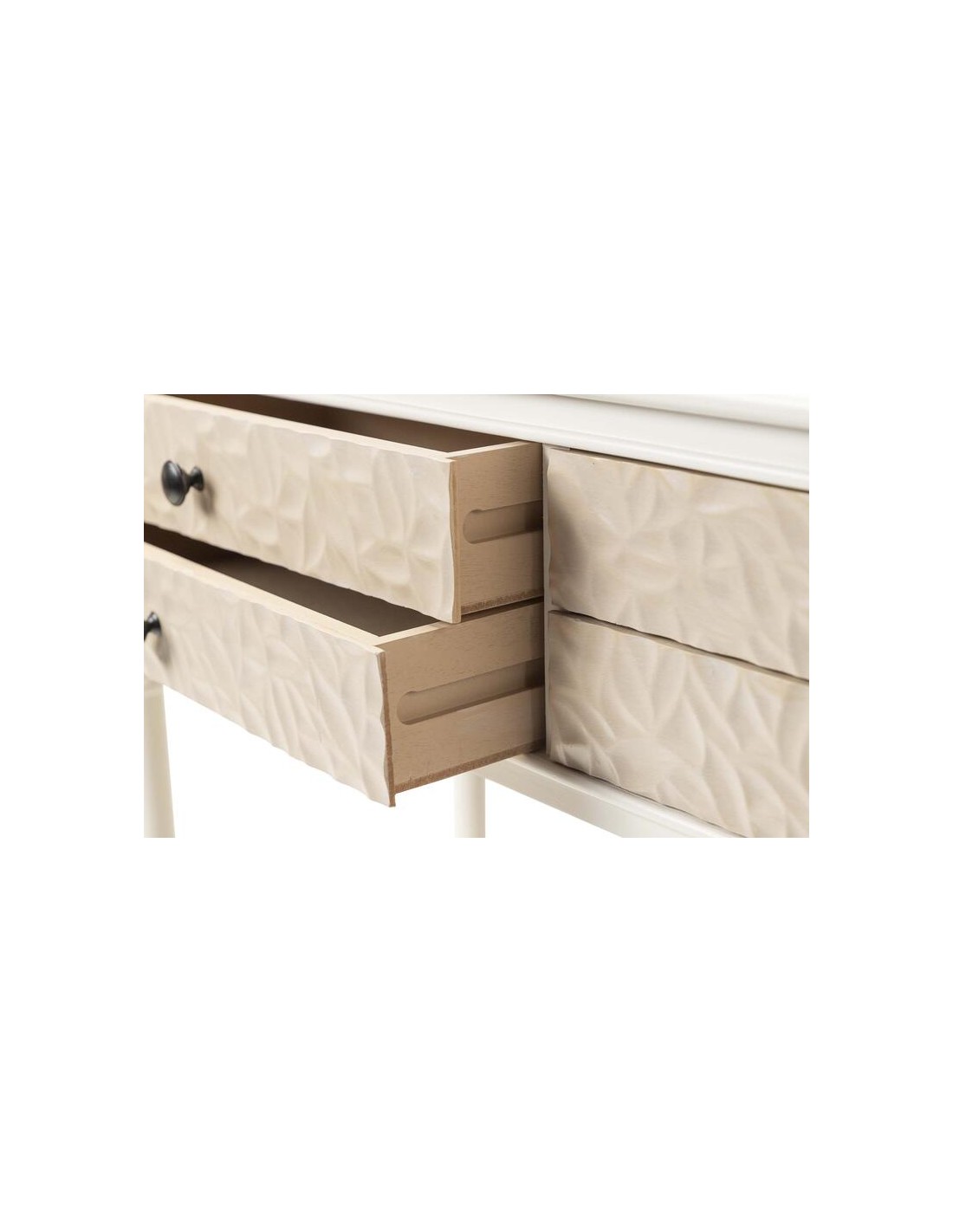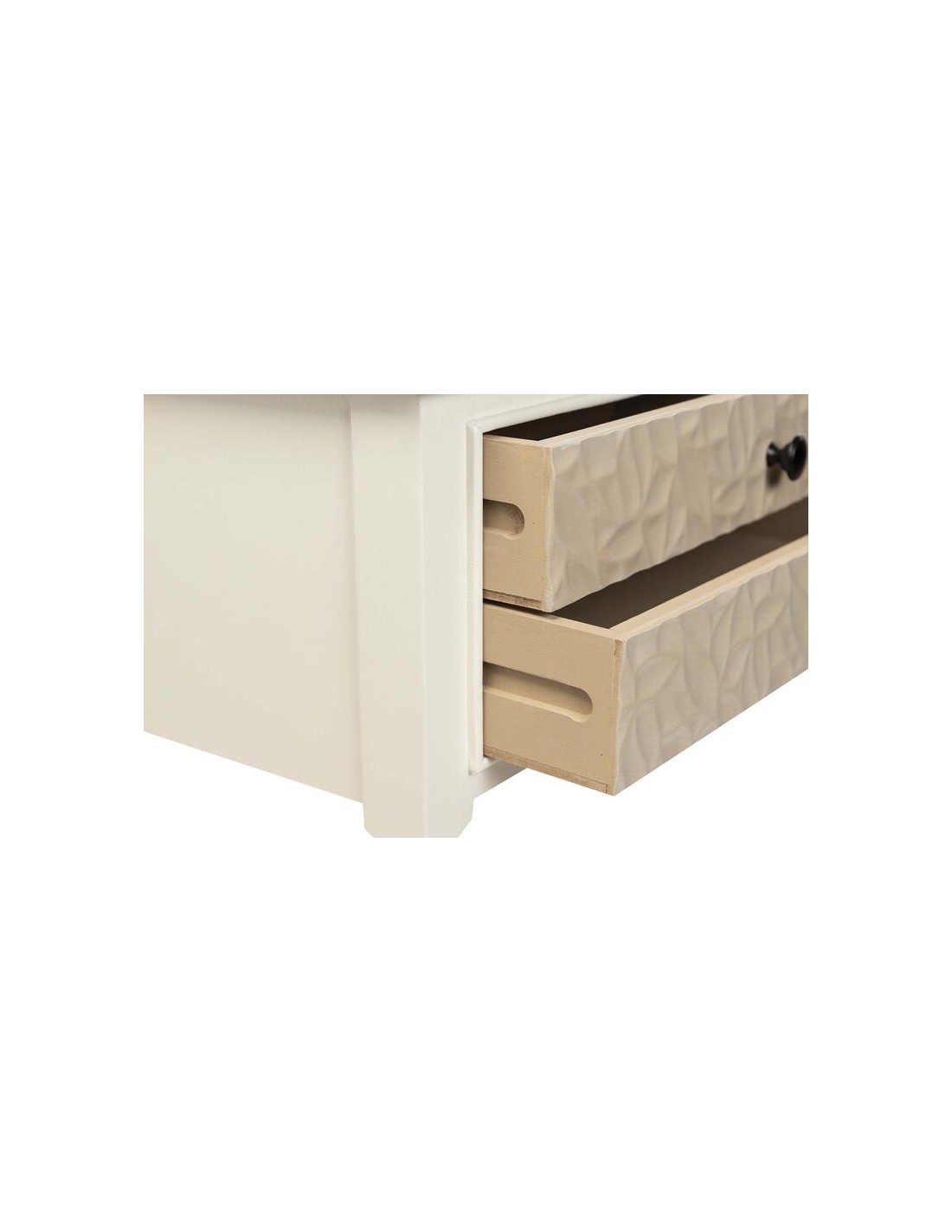 La combinación de madera MDF y pino garantiza resistencia y durabilidad, al tiempo que ofrece un acabado cuidado y elegante. Los cajones en relieve añaden un detalle decorativo que rompe la uniformidad y aporta carácter al mueble.