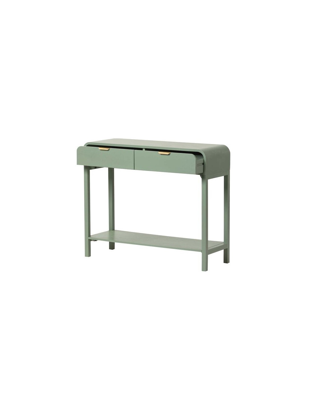 El Mueble recibidor verde pino y dorado es perfecto para dar color a tu entrada, creando un ambiente acogedor y sofisticado.