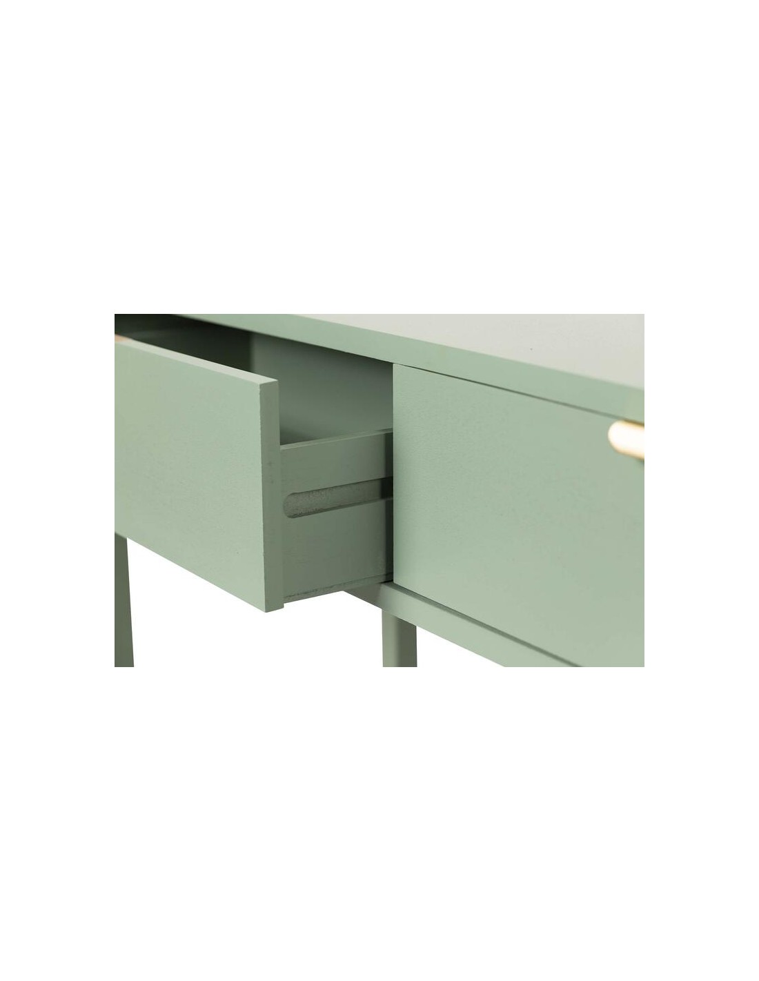 El Mueble recibidor verde pino y dorado es ideal para crear espacios únicos, elegantes y llenos de estilo desde el primer momento.