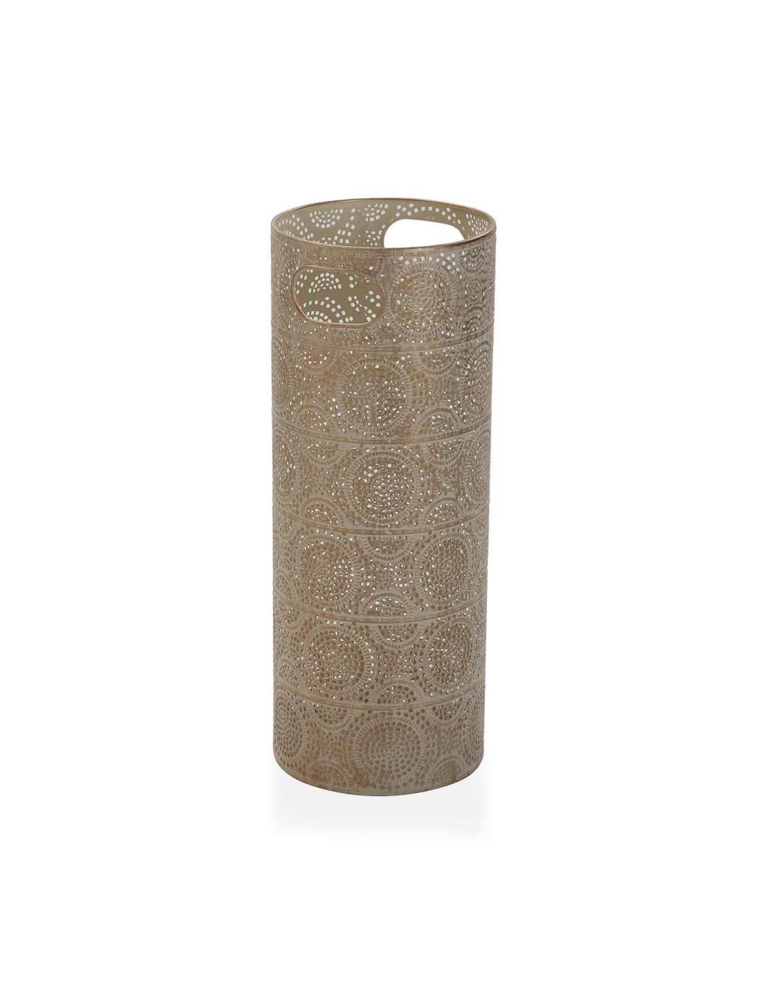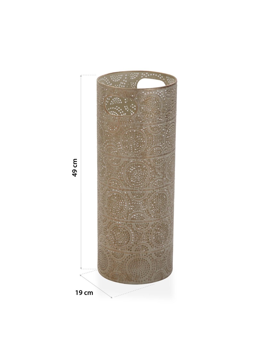 Decora tu entrada con estilo gracias a este paragüero fabricado en metal con un elegante diseño calado y un acabado en color dorado envejecido que aporta un toque sofisticado y distinguido a cualquier ambiente. Su aspecto metálico con efecto envejecido combina a la perfección con decoraciones clásicas, vintage o contemporáneas.