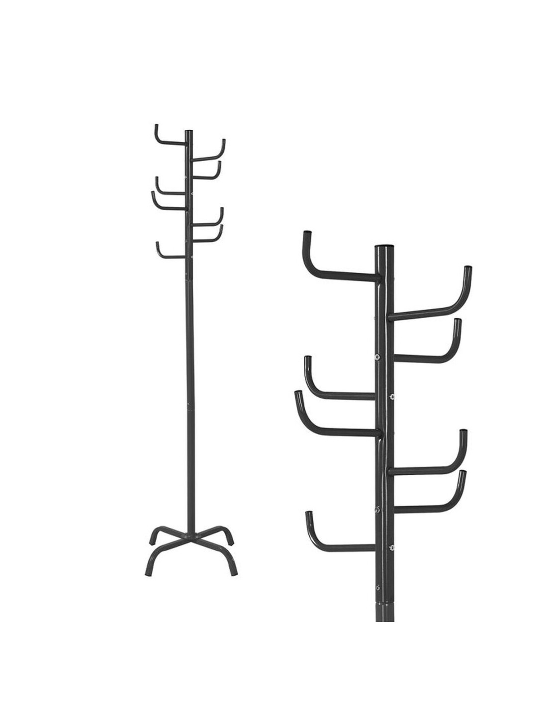 El Perchero de pie Negro destaca por su funcionalidad, gracias a sus ocho colgadores y a su base de cuatro ramas que aportan estabilidad. Puedes colocarlo en recibidores, dormitorios, pasillos, oficinas o incluso en locales comerciales que necesitan una solución práctica para recibir a clientes o visitantes.