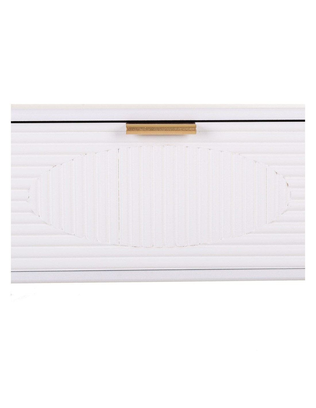 - Funcionalidad: Más allá de su atractivo visual, el Mueble de Entrada ofrece una funcionalidad excepcional. Su cajón único con tirador dorado es perfecto para almacenar objetos pequeños, manteniendo tu entrada organizada.