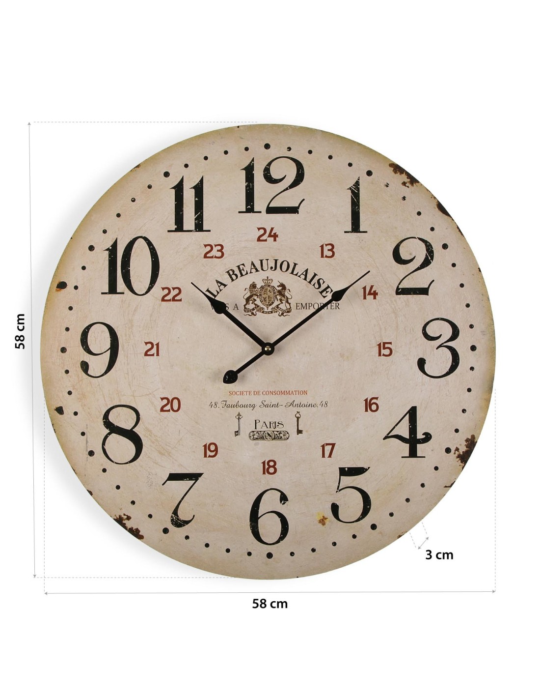Una de las principales ventajas de este reloj de pared de madera en tonos blancos es su capacidad para aportar luz y sensación de amplitud a cualquier espacio. Su diámetro de 58 cm permite que actúe como punto focal decorativo, combinando estética y funcionalidad en una sola pieza.