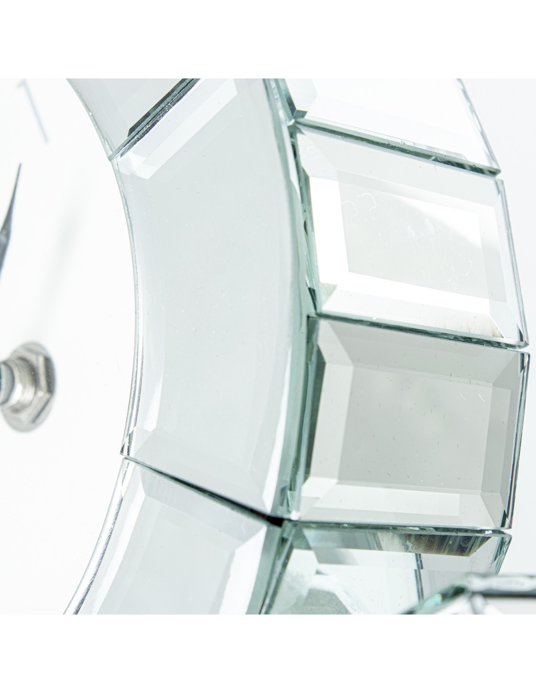 Este reloj de sobremesa con diseño de espejos es una pieza decorativa perfecta para aportar un toque moderno y sofisticado a cualquier estancia del hogar. Su acabado brillante refleja la luz y crea un efecto visual elegante que destaca dentro de la decoración.