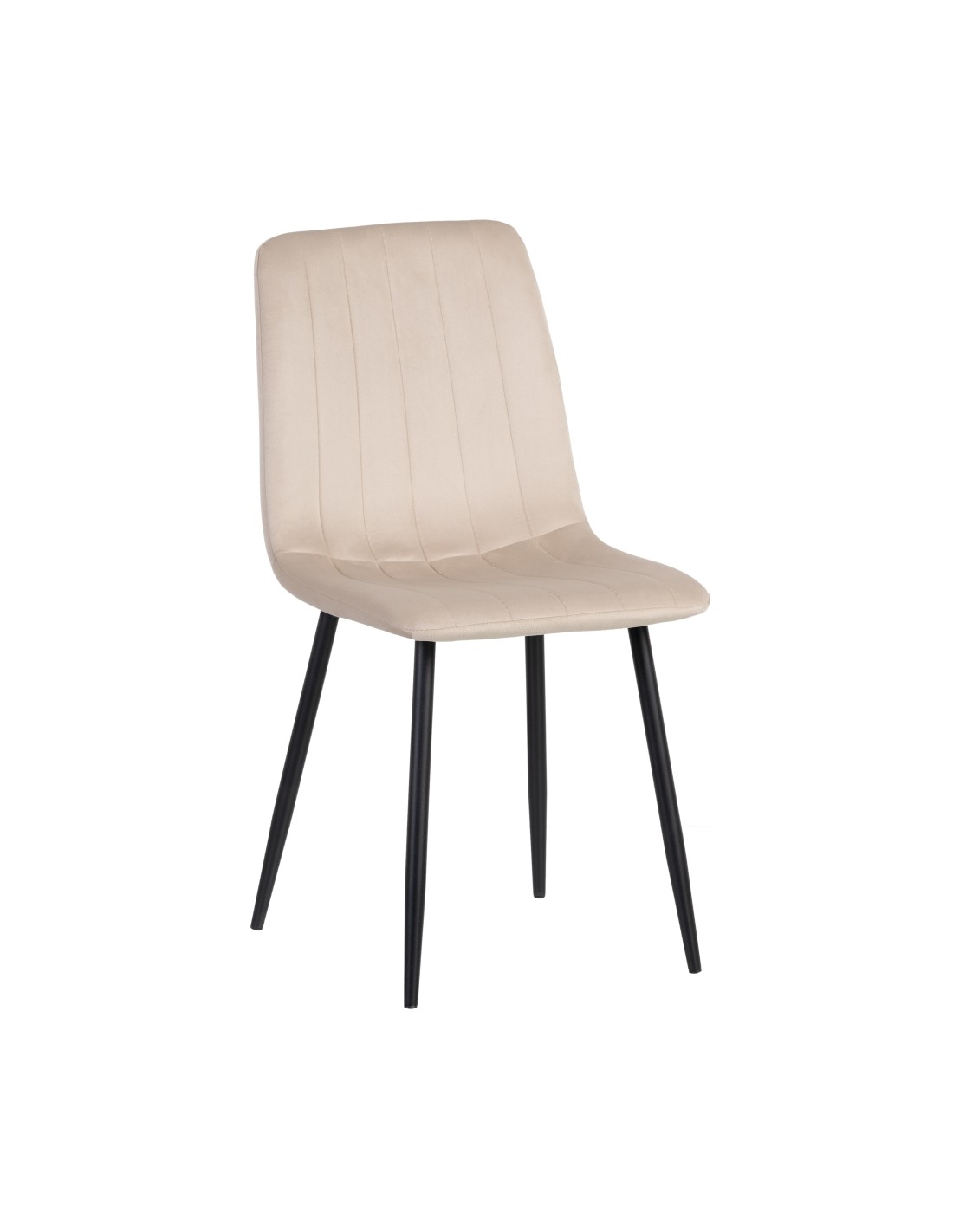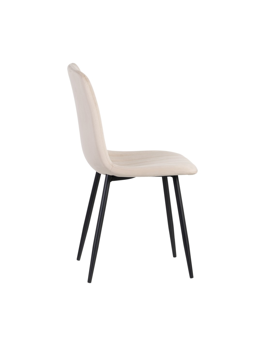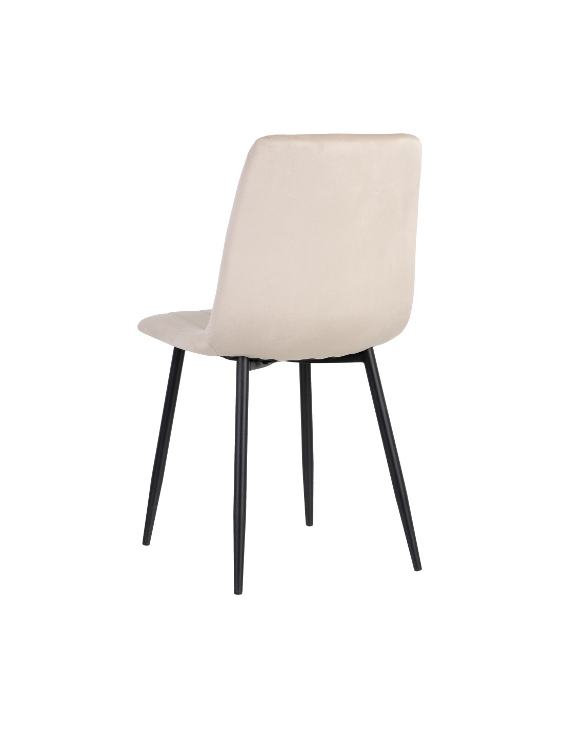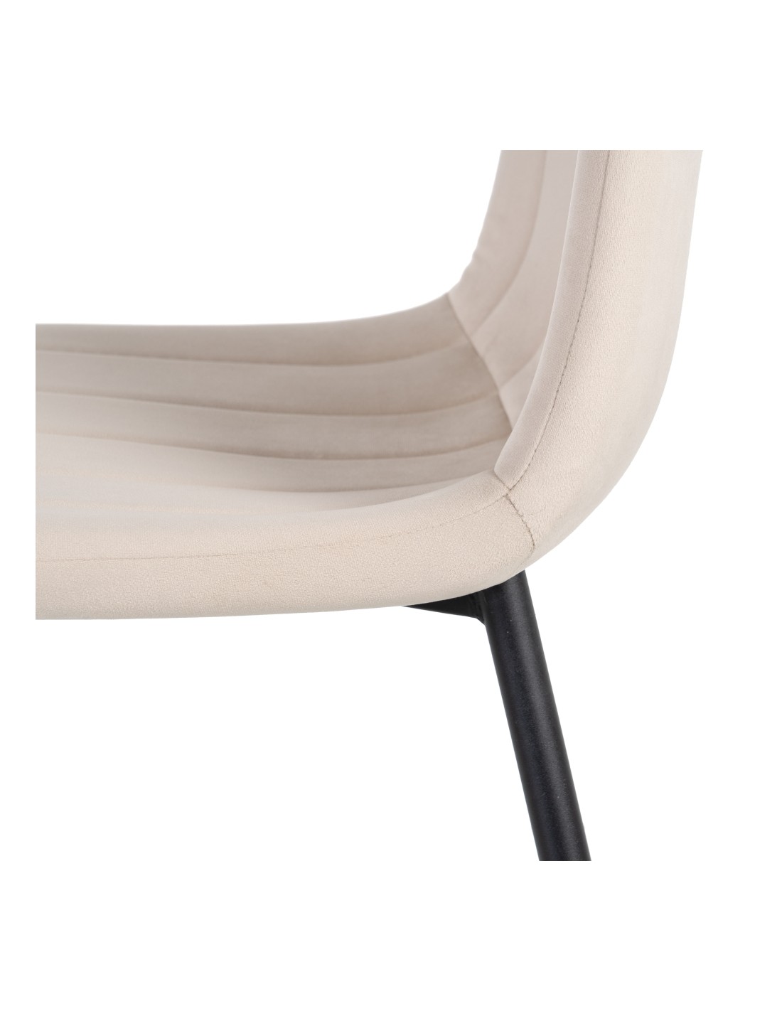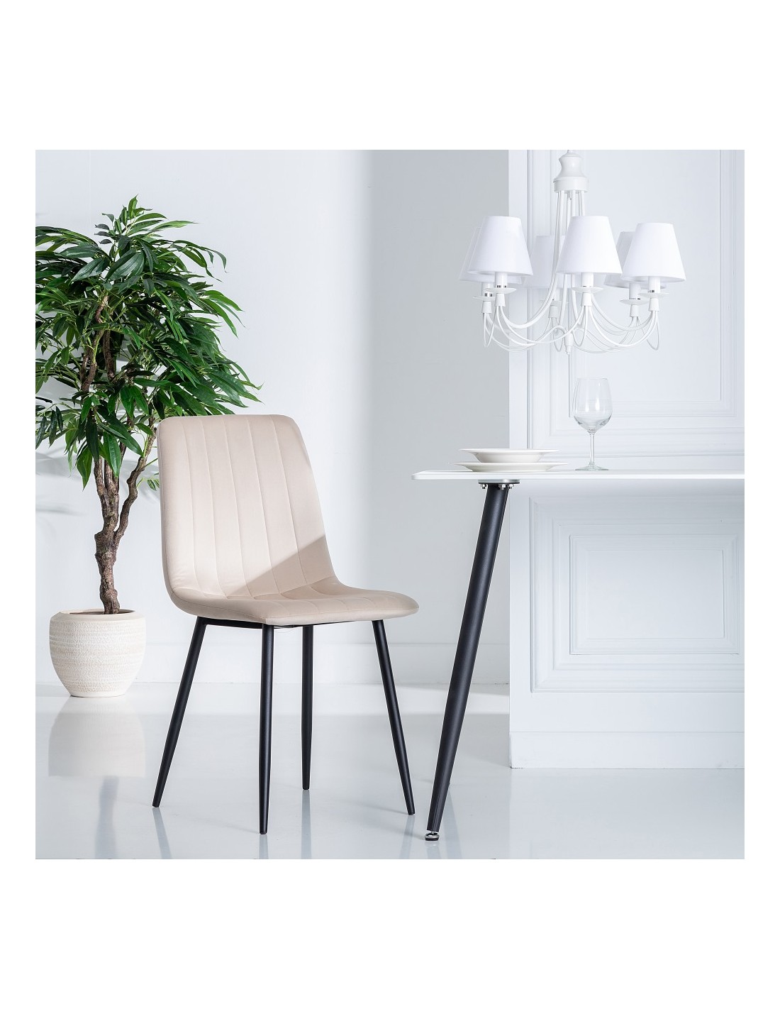 Las patas de metal reforzadas en color negro aportan estabilidad y seguridad, permitiendo un uso continuo sin comprometer la resistencia. La Silla Beige Terciopelo Líneas soporta un peso máximo de hasta 145 kg, lo que garantiza su fiabilidad y robustez.