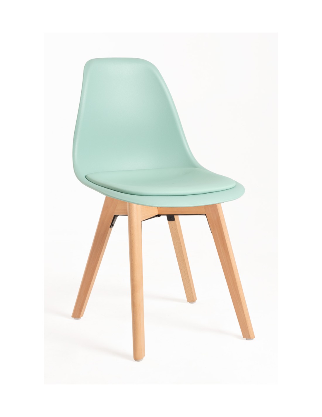 Moderna y funcional silla fabricada en polipropileno con patas de madera de haya reforzadas y cojín acolchado en polipiel para mayor comodidad. Su diseño combina estilo nórdico y confort, ideal para comedores, cocinas o zonas de trabajo. Disponible en varios colores para adaptarse a cualquier ambiente.