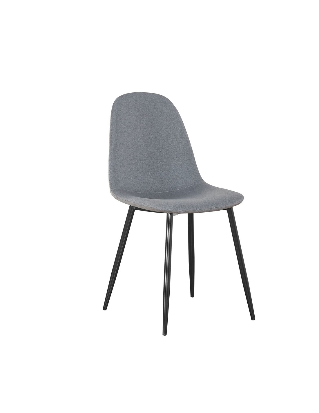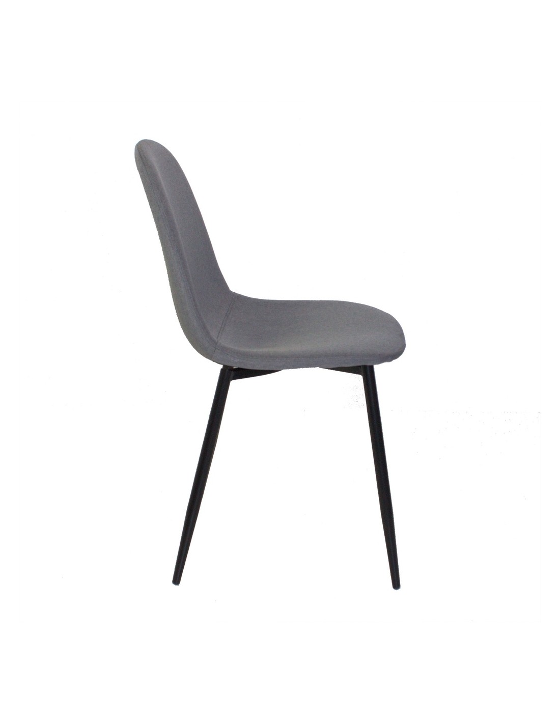 Elegante silla de comedor fabricada en tela de poliéster en color gris, que combina estilo, confort y resistencia. Su asiento acolchado ofrece una sentada cómoda y ergonómica, ideal tanto para el comedor como para espacios de trabajo o dormitorios. Las patas de metal reforzadas en color negro aportan estabilidad y un diseño moderno que encaja perfectamente en ambientes contemporáneos, nórdicos o industriales.