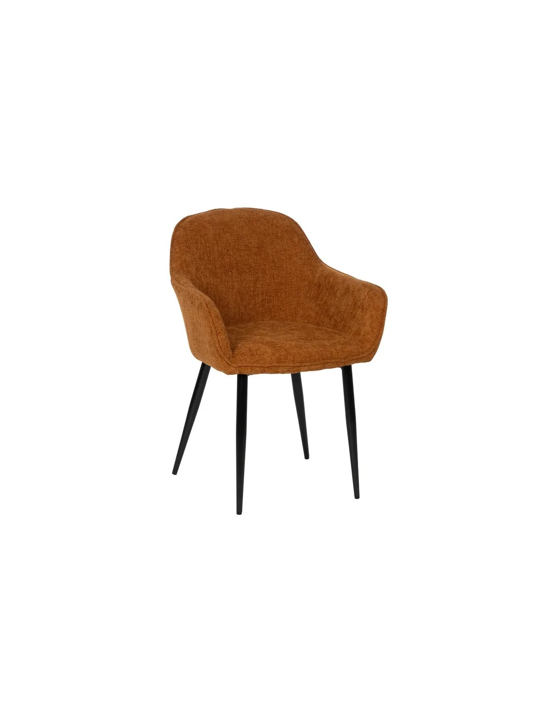 Silla con brazos y con una cómoda y ancha sentada fabricada en tela de poliéster el cuerpo interior en madera y las patas reforzadas en metal de color negro. Disponible en 8 colores Marrón , beige , blanco , taupe , amarillo , azul , verde y gris