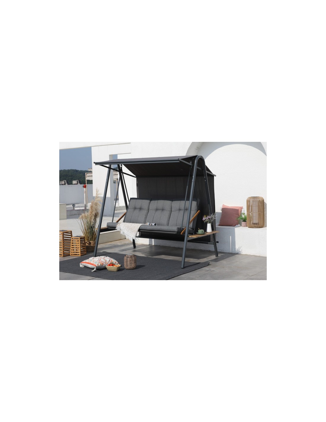En definitiva, el Columpio de acero 3 plazas es una pieza perfecta para quienes desean añadir confort, estilo y funcionalidad a la decoración exterior. Su diseño moderno lo convierte en una elección ideal para disfrutar del aire libre.