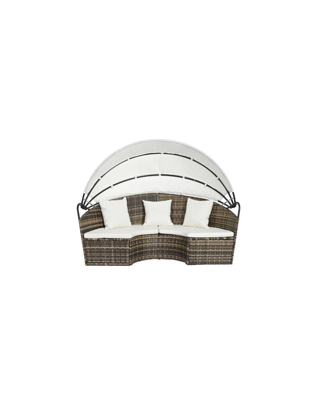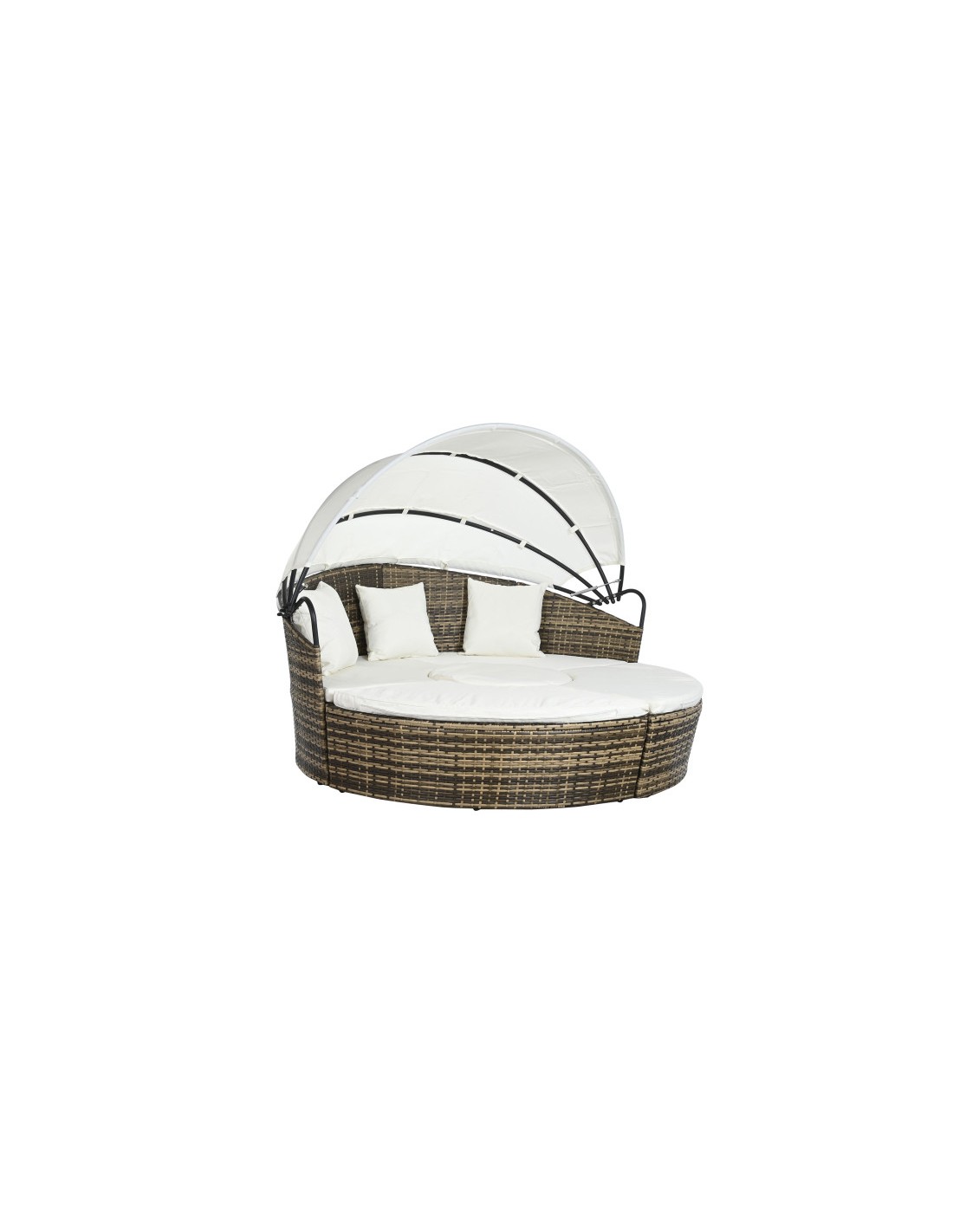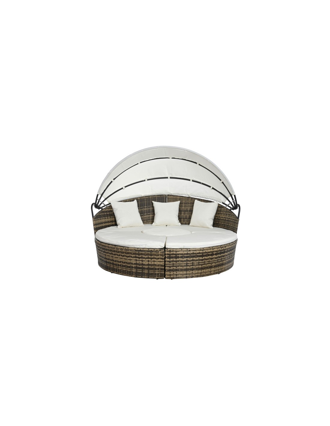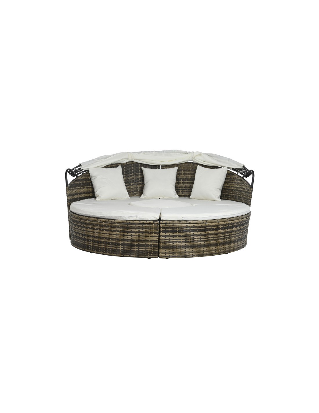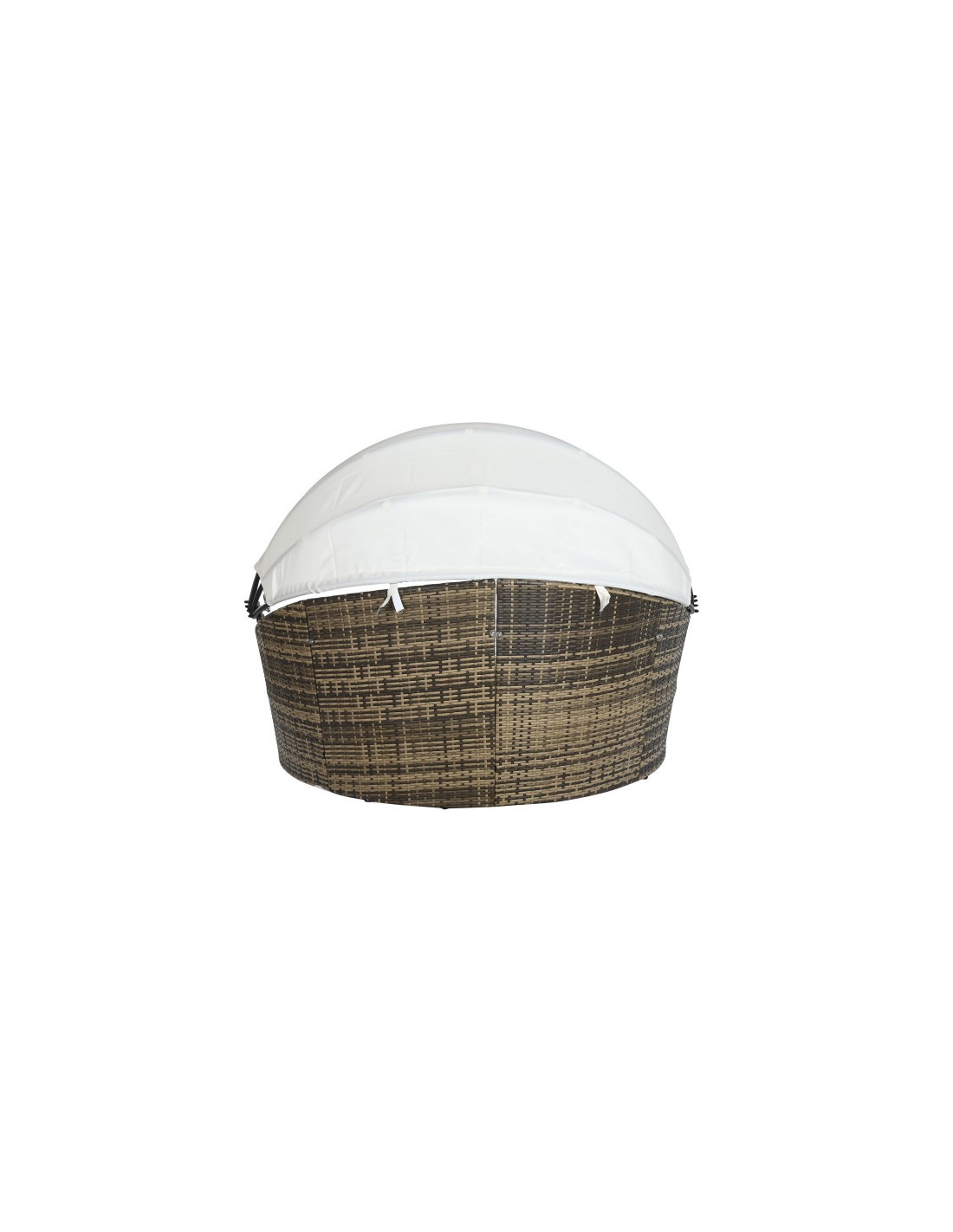 Fabricada con ratán sintético y estructura de acero, esta cama combina resistencia, durabilidad y un diseño contemporáneo. El ratán sintético aporta un acabado elegante y natural, mientras que el acero garantiza estabilidad y firmeza.