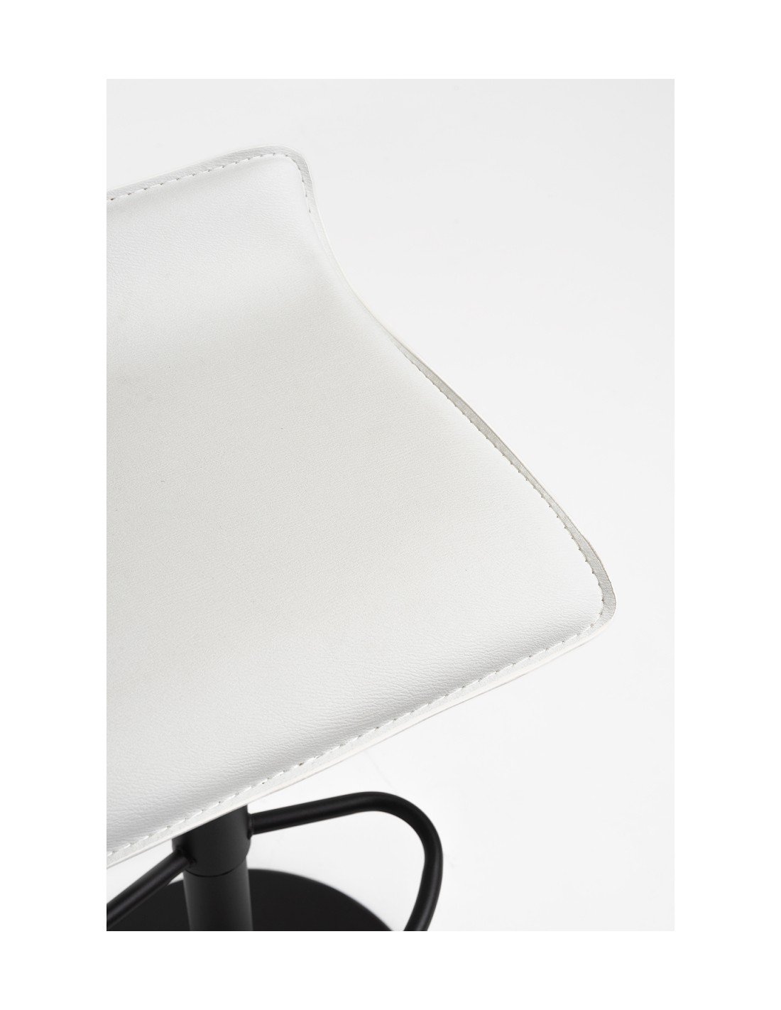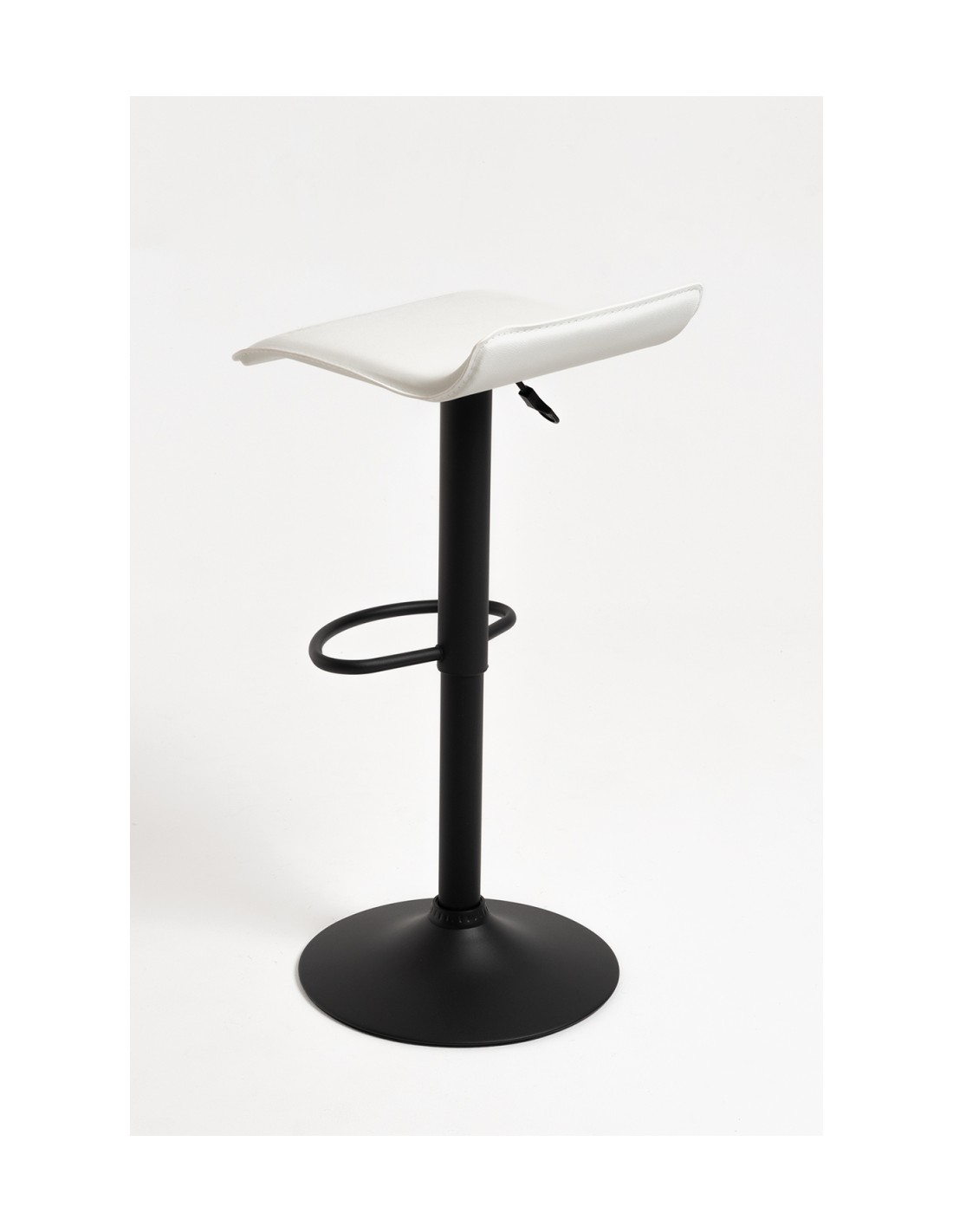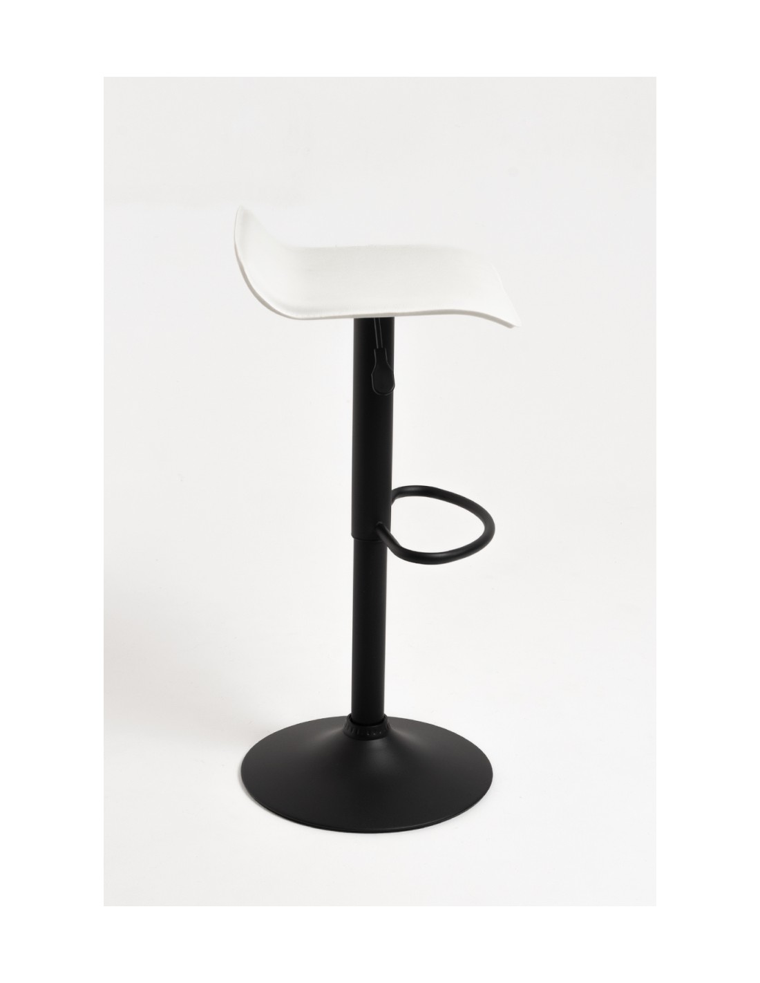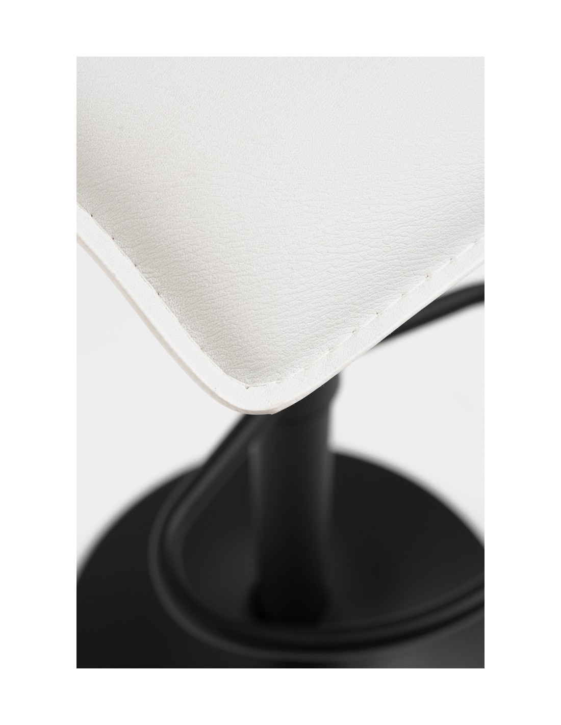 Taburete fabricado en tela de poli piel con la base reforzada elevable de acero en color negro el asiento mide de ancho 38cm fondo de 38cm y altura ajustable disponible en 2 colores blanco y negro.