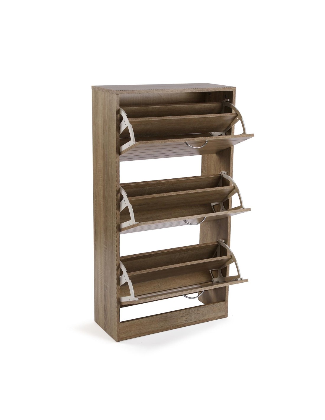 Zapatero 3 cajones marrón con 3 cajones abatibles 57x24x107 cm